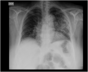 La radiografía fue informada como opacidades de relleno alveolar bilateral, de predominio izquierdo.
